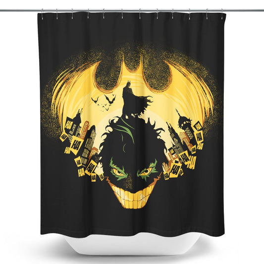 Dark Knightmare - Shower Curtain"Dark Knightmare" from Harantula Want more options for this design? Click here. Our Shower Curtains are made from 100% polyester and feature a vivid, full-color one-sided print. Shower curtains are hand sewn and meticulously crafted in the USA with a 12 button-hole top for simple hanging. Dimensions are 71" x 74". Curtain rod, shower...