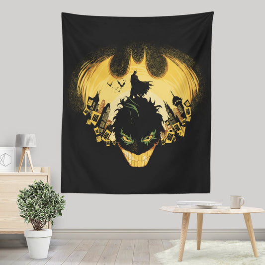 Dark Knightmare - Wall Tapestry"Dark Knightmare" from Harantula Want more options for this design? Click here. Our Wall Tapestries are made of 100% lightweight polyester with hand-sewn finished edges. Featuring vivid colors and crisp lines, these highly unique and versatile tapestries are durable enough for both indoor and outdoor use. Machine washable with cold water on gentle cycle...