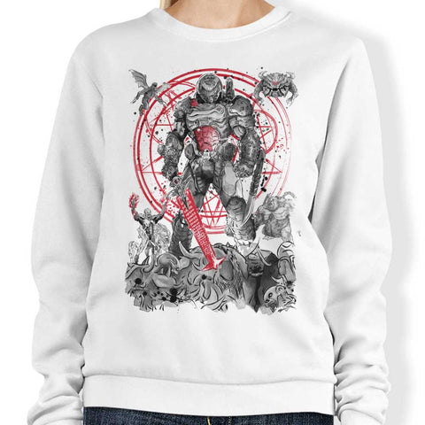 The Hell Walker - Sweatshirt"The Hell Walker" from Dr. Monekers Want more options for this design? Click here. Crewneck Sweatshirts are available in sizes S to 4XL. The material is 8.5-ounce, 80/20 ring spun cotton/poly with a removable tag for comfort. There is a twill-taped neck and locker patch to minimize stretching. Care Instructions: Machine wash...