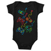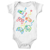 Onesies are available in sizes Newborn to 24M. Material is 5.0-ounce, 100% combed, ring spun cotton with ultra soft 1x1 baby rib knit. Flatlock seams. Double-needle ribbed binding on neck, shoulders, sleeves and leg openings. Reinforced three-snap closure and CPSIA compliant - tracking label in side seam. Removable tag for comfort.