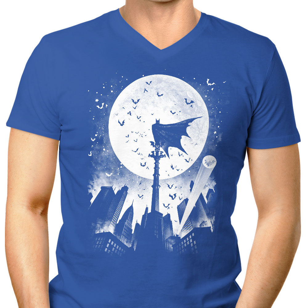 AlemagliaAnimationBlackBlueCaped SilhouetteComicsGothamMen's Premium T-ShirtMen's T-ShirtMen's V-NeckMoviesRedShop by Artist: AlemagliaShop by Collection: GothamShop by Products: Men's V-NecksTelevisionVendor: ApparelVendor: Once Upon a Tee