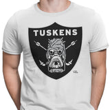 Men's T-Shirts are available in sizes S to 6XL. Material is 5.3-ounce, 100% cotton with taped neck and shoulders. Seemless double-needle 7/8" collar, double-needle sleeves and hem. Removable tag for comfort.