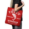 Our quality crafted Tote Bags are hand sewn in the USA and are crafted from 100% polyester poplin fabric. Each tote features vivid, full-color printed art on both sides and is supported by a White 1" wide cotton strap.