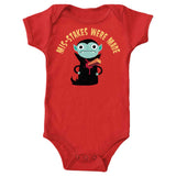 Onesies are available in sizes Newborn to 24M. Material is 5.0-ounce, 100% combed, ring spun cotton with ultra soft 1x1 baby rib knit. Flatlock seams. Double-needle ribbed binding on neck, shoulders, sleeves and leg openings. Reinforced three-snap closure and CPSIA compliant - tracking label in side seam. Removable tag for comfort.