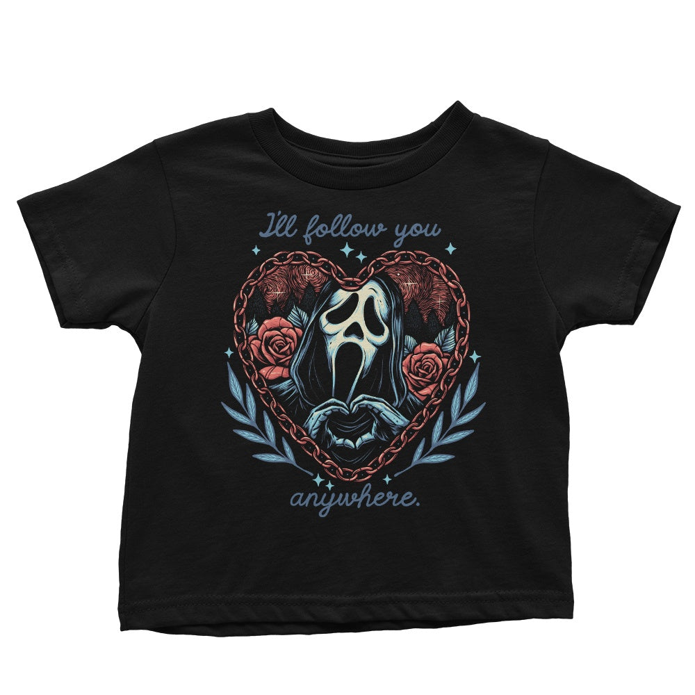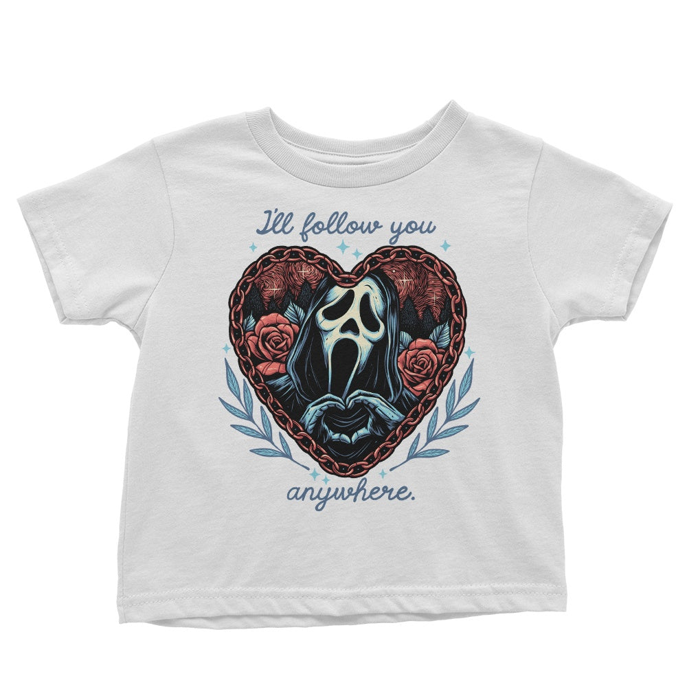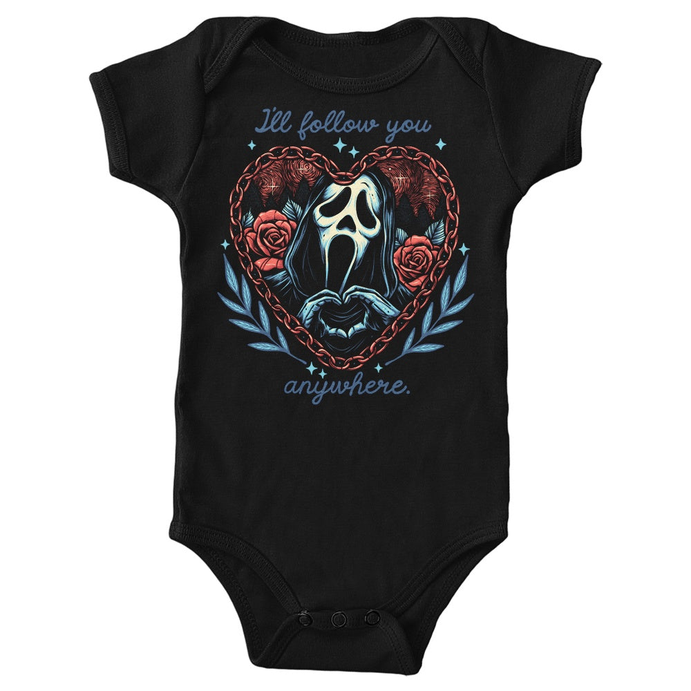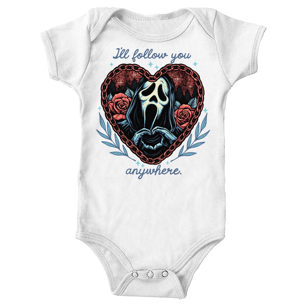 BlackFollow You AnywhereHorrorInfant OnesieInfant/Toddler T-ShirtKids ApparelMomma GorillaNavyShop by Artist: Momma GorillaShop by Collection: HorrorShop by Collection: WoodsboroShop by Products: Youth ApparelVendor: ApparelVendor: Once Upon a TeeWhiteWoodsboroYouth ApparelYouth T-Shirt
