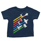 Infant/Toddler T-Shirts are available in sizes 6M to 4T. Material is 5.5-ounce, 100% cotton. Ribbed crew neck. Double-needle sleeve and bottom hems. Taped shoulder-to-shoulder. CPSIA compliant - tracking label in side seam.
