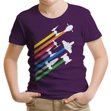 Youth T-Shirts are available in sizes XS to XL. Material is 5.3-ounce, 100% cotton with taped neck and shoulders. Seemless double-needle 7/8" collar, double-needle sleeves and hem. Removable tag for comfort.