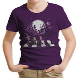 Youth T-Shirts are available in sizes XS to XL. Material is 5.3-ounce, 100% cotton with taped neck and shoulders. Seemless double-needle 7/8" collar, double-needle sleeves and hem. Removable tag for comfort.